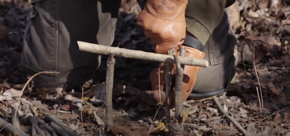 - Now carve a hook into two sticks. The base should be stronger and longer than the hook. Now plant the base into the ground and make sure that the base is carved so that it can easily get into the ground. The base should be close to the tree.